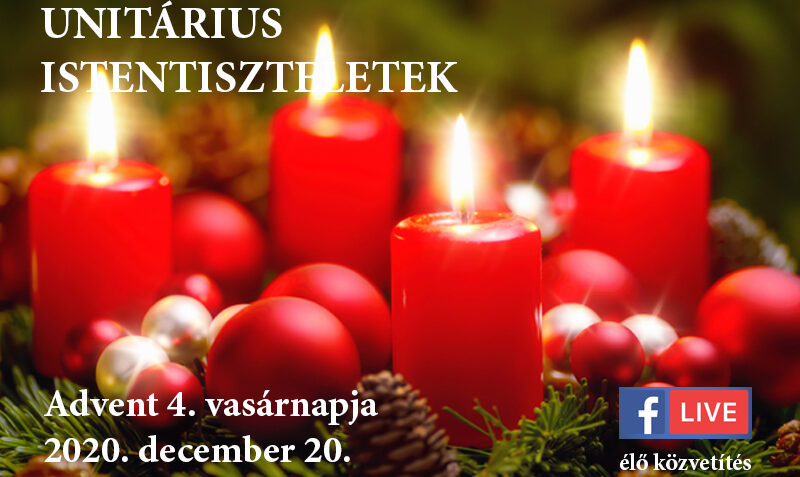 10 órától a Bartók Béla Unitárius Egyházközség Facebook-oldalán, szolgál Léta Sándor lelkész. Közreműködik a Csudatáska társulat Adventi hírnök című koncertjével.
